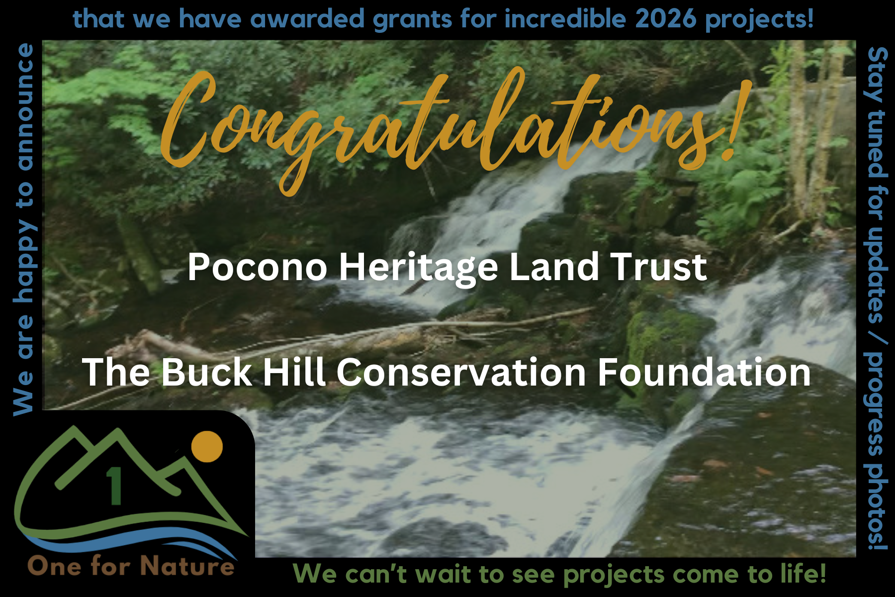 The Board of One for Nature, Inc. is thrilled to announce that grants have been awarded to Pocono Heritage Land Trust and The Buck Hill Conservation Foundation as part of our 7th grant round! These projects align with our mission to preserve and enhance natural spaces for all to enjoy in Monroe County, PA.